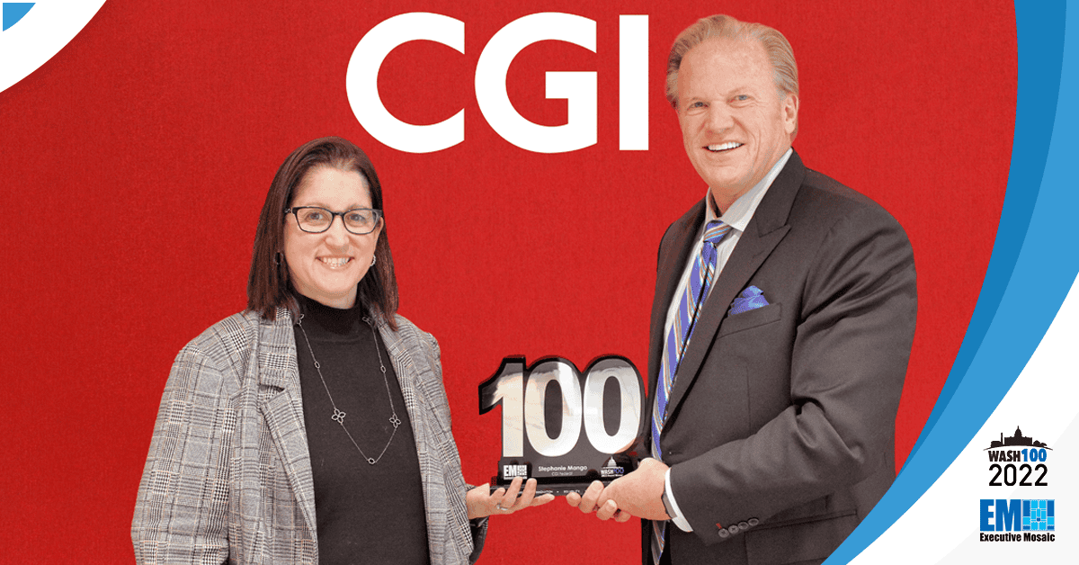 Jim Garrettson, founder and CEO of Executive Mosaic, presented Tim Hurlebaus, president of CGI Federal, with his second Wash100 Award on Friday.