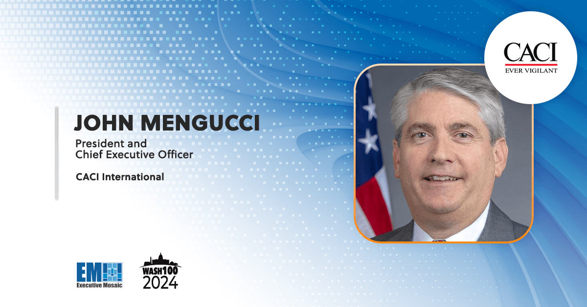 John Mengucci, president and CEO of CACI International, has received the most prestigious award in all of government contracting (GovCon), the Wash100 Award, for the second consecutive year.