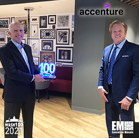 John Goodman, chief executive of Accenture Federal Services, was presented his fourth consecutive Wash100 Award by Executive Mosaic CEO Jim Garrettson on Monday.