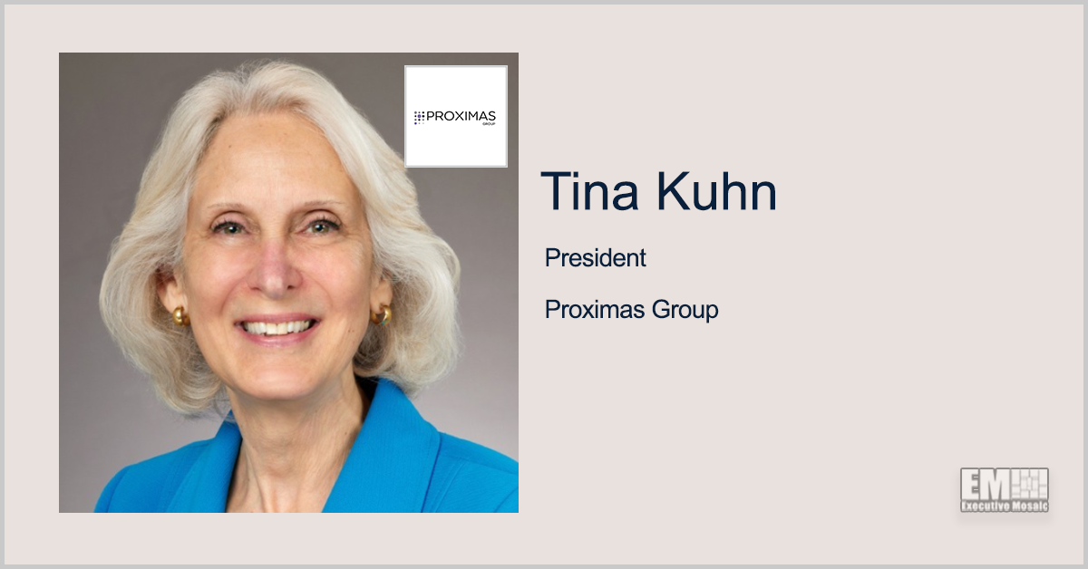 Tina Kuhn, a more than three-decade government contracting industry veteran, has been named president of Maryland-based software engineering and cybersecurity company Proximas Group.