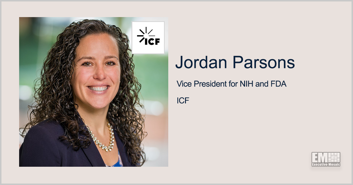 Jordan Parsons, an industry veteran with over 16 years of experience supporting federal civilian agency customers, has joined ICF (Nasdaq: ICFI) to oversee programs with the National Institutes of Health and the Food and Drug Administration as vice president for public health, GovCon Wire has learned.