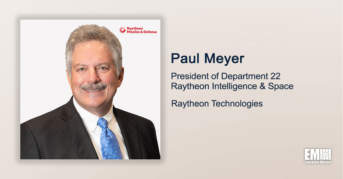 Paul Meyer, president of Department 22 at Raytheon Technologies‘ intelligence and space business, was featured in a recent Executive Spotlight interview published Tuesday. He said Department 22 was formed in response to customers’ call to boost the speed of innovation amid the Department of Defense’s implementation of its Joint All-Domain Command and Control plan. Meyer also talked about Raytheon Intelligence & Space‘s efforts to help build up DOD’s JADC2 tech baseline, develop cross-domain battle management offerings and drive value for its workforce.