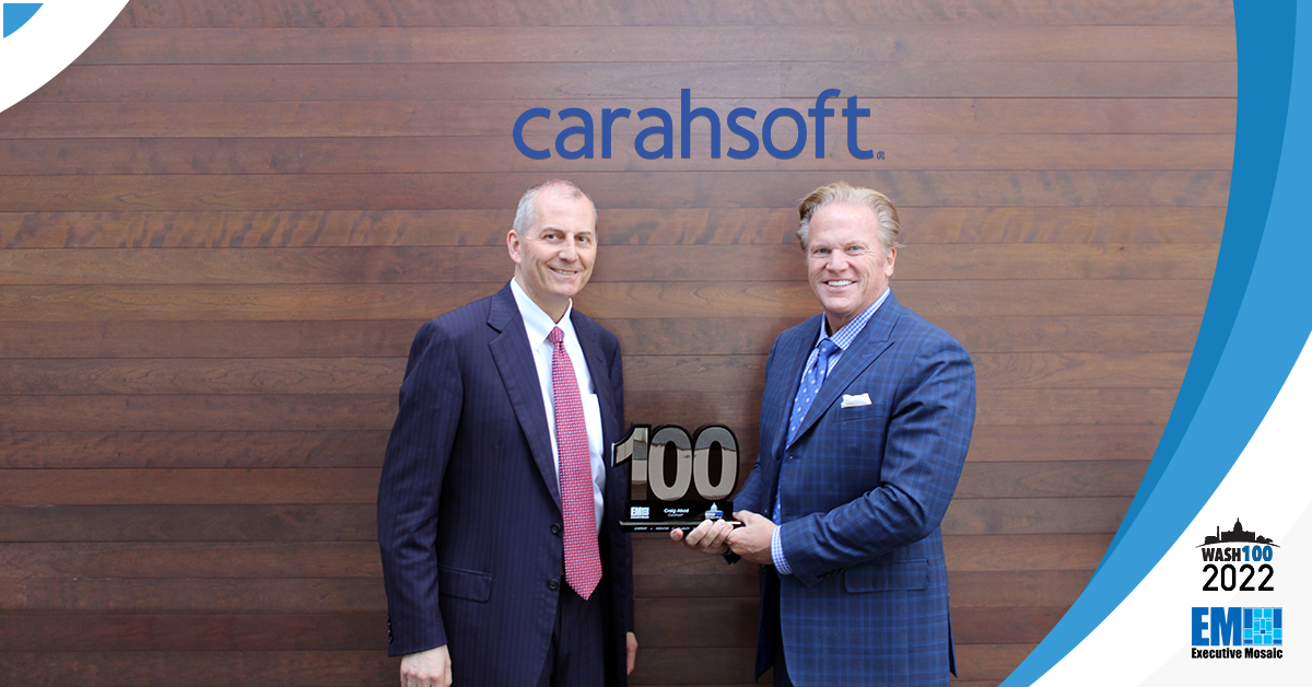 Executive Mosaic CEO Jim Garrettson Presents 8th Wash100 Award to Carahsoft President Craig Abod