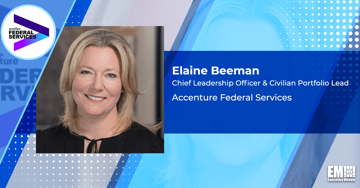 Elaine Beeman, the civilian portfolio lead at Accenture‘s (NYSE: ACN) federal services subsidiary, will assume the additional role of chief leadership officer within the same business.