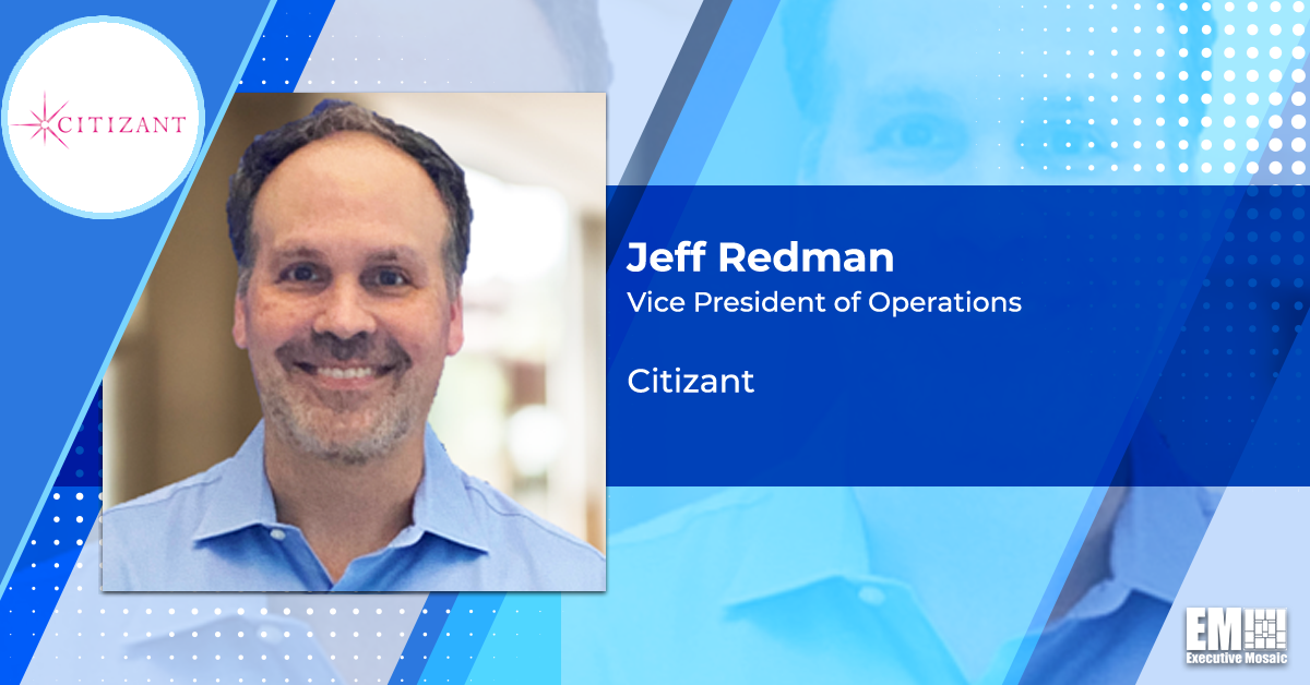 Jeff Redman, formerly director of Citizant‘s civilian business unit, has been appointed vice president of operations at the Chantilly, Virginia-based government information technology services provider.