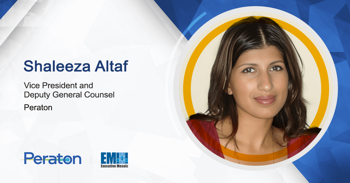 Altaf moved to Peraton through its 2021 merger with Perspecta, where she served as senior counsel for ethics and investigations.
