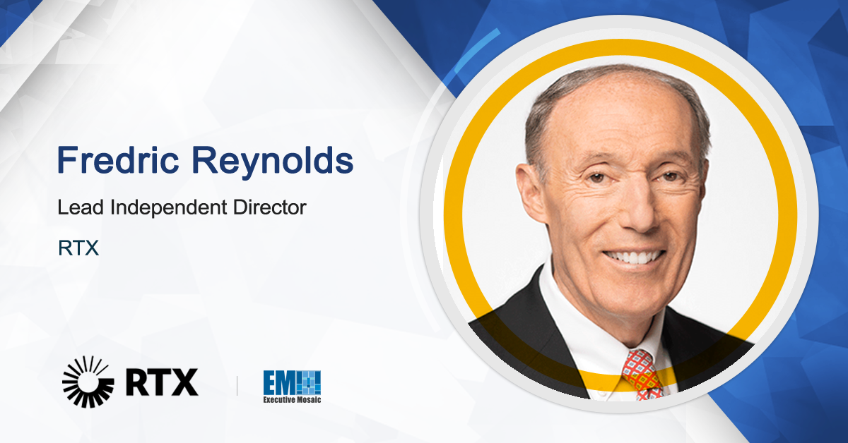 Fredric Reynolds, a member of the board of directors at RTX (NYSE: RTX) since April 2020, has been named lead independent director at the Arlington, Virginia-headquartered defense and aerospace contractor.