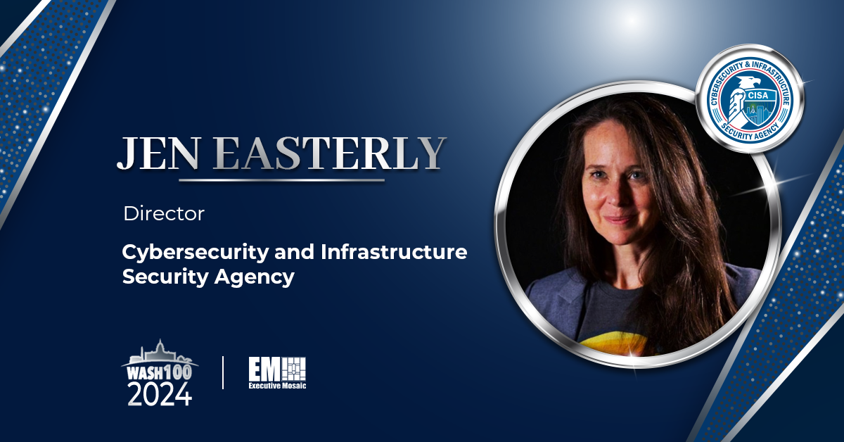 Executive Mosaic is thrilled to honor Jen Easterly, director of the Cybersecurity and Infrastructure Security Agency, with a 2024 Wash100 Award in recognition of her commitment to cybersecurity and her exploration of the role it plays in the adoption of advanced technologies.