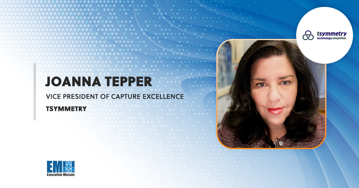 Joanna Tepper, formerly vice president of business development and capture at TechFlow, has been appointed VP of capture excellence at Tsymmetry, an Arlington, Virginia-based provider of information technology services to the federal government.