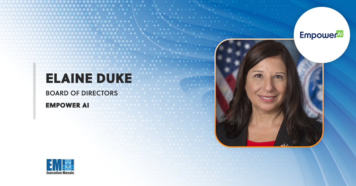 Empower AI has appointed to its board of directors Elaine Duke, former deputy secretary of the Department of Homeland Security and once acting DHS secretary.