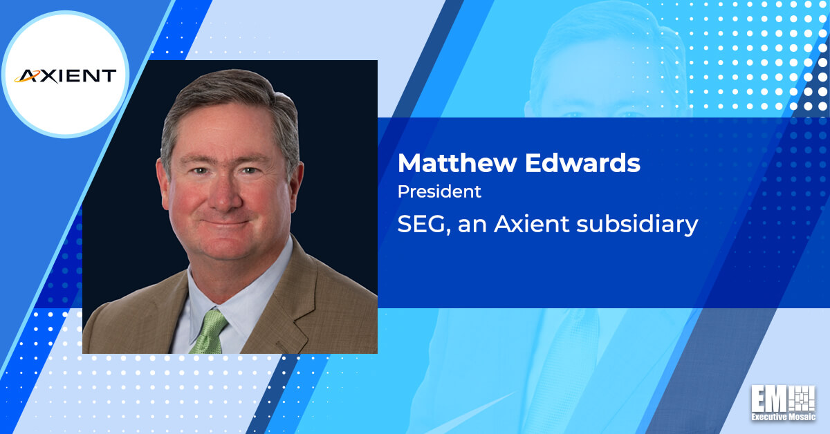 Matthew Edwards, a two-decade defense and intelligence market veteran, has been appointed vice president of Axient‘s Navy business segment and president of the company’s SEG subsidiary.