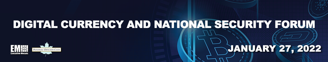 The Potomac Officers Club will hold its Digital Currency and National Security Forum on Jan. 27. Sign up for the virtual event to hear from government and industry leaders as they talk about the implications, risks, opportunities and challenges that digital currencies pose to the future of the U.S. economy and national security.