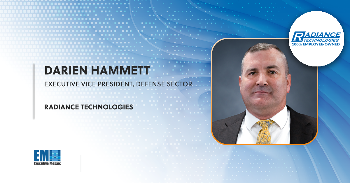 The Huntsville, Alabama-based contractor said Thursday Hammett previously led Radiance’s space group and he joined the company in September 2019 as assistant vice president supporting the CEO and chief strategy officer.