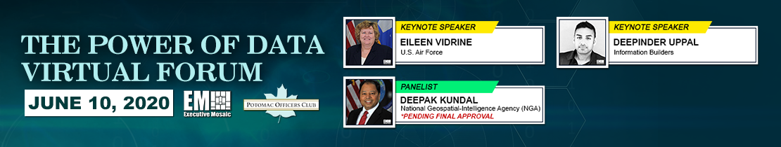 The Power of Data Virtual Event will feature two keynote speakers: Eileen Vidrine, chief data officer of the U.S. Air Force and Deepinder Uppal, vice president of Public Sector Technology Innovation with Information Builders, who will also lead a full panel of experts, to address how data integration will power the future and build a stronger government.