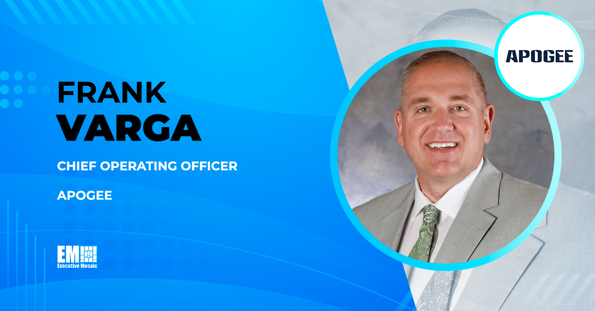 Frank Varga, formerly vice president of operations at Apogee, has been promoted to the chief operating officer role at the Colorado Springs, Colorado-headquartered national security and defense technology provider.