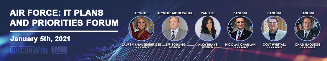 The event will also feature an expert panel, hosting Alka Bhave of Perspecta, as well as Marc Packler, Nicolas Chaillan and Chad Raduege of the U.S. Air Force. To register for the Air Force: IT Plans and Priorities Forum, as well as view upcoming opportunities, visit GovConWire’s Event Page.