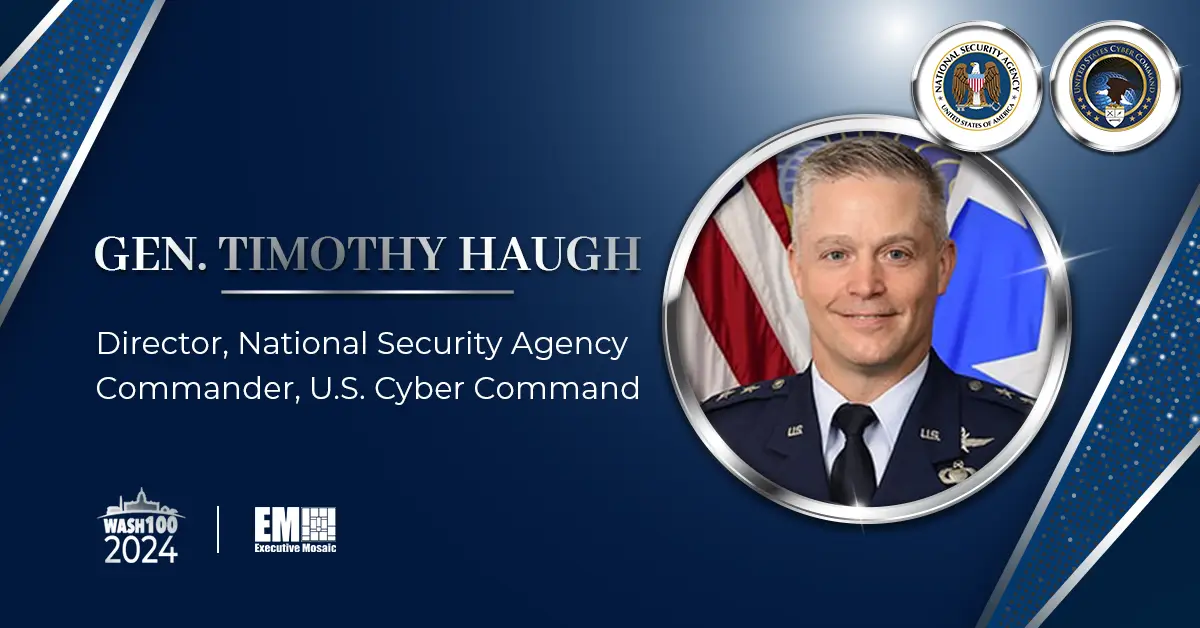 U.S. Air Force Gen. Timothy Haugh, director of the National Security Agency and commander of U.S. Cyber Command, is among the recipients of the 2024 Wash100 Award, joining a league of outstanding government contracting leaders. This is Haugh’s first time to be inducted into Executive Mosaic’s annual roster and the award recognizes his leadership and contributions to cyber defense.