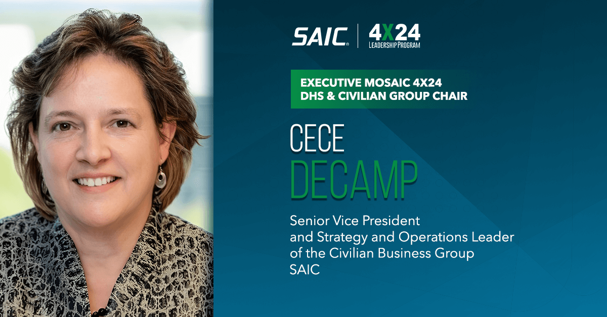 Executive Mosaic has selected CeCe DeCamp of SAIC as chair of the Department of Homeland Security and Civilian Group for the 4×24 Executive Leadership Series.