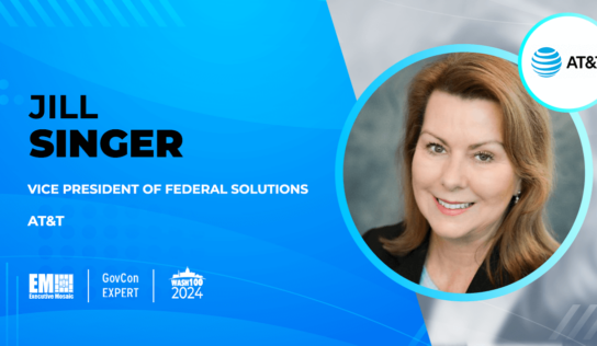 SAIC CEO Toni Townes-Whitley has received the 2025 Wash100 Award. Townes-Whitley received a visit from Executive Mosaic CEO Jim Garrettson,