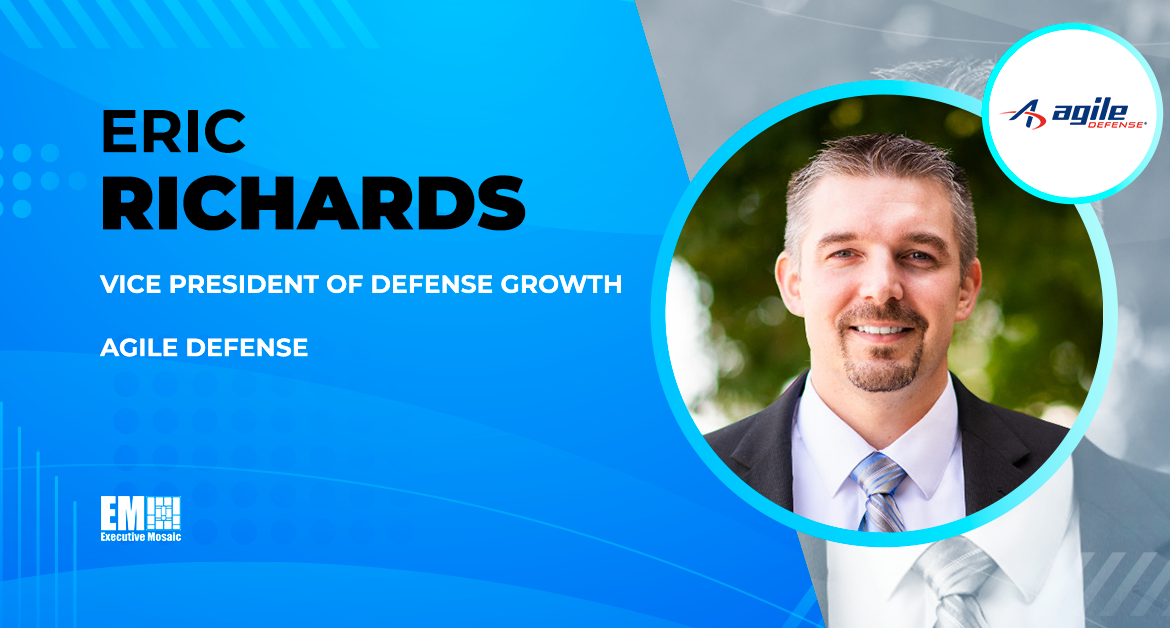 Eric Richards was elevated to the role of vice president of defense growth at information technology services provider Agile Defense,…