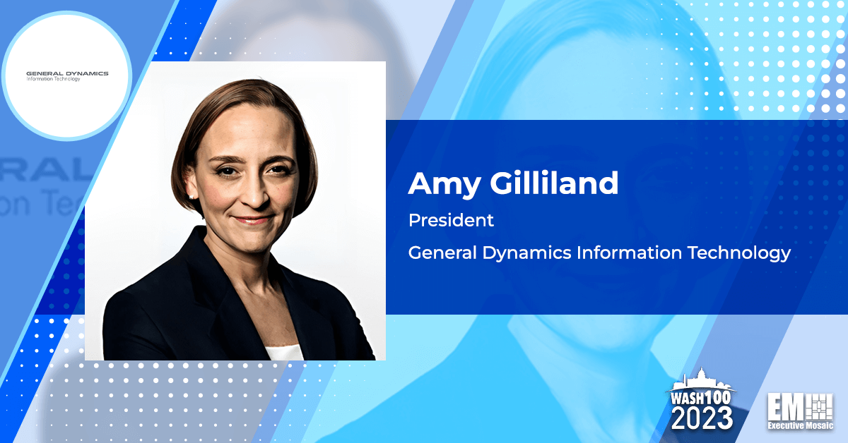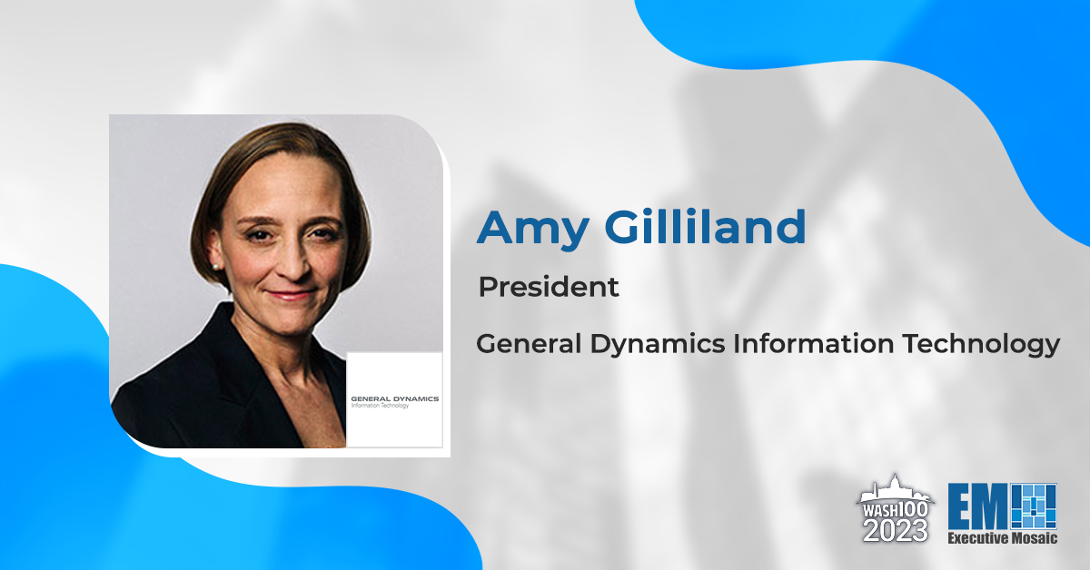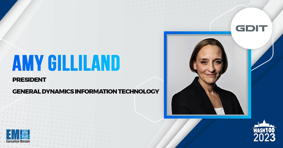 Executive Mosaic is pleased to recognize Amy Gilliland, president of General Dynamics Information Technology, with the 2024 Wash100 Award for driving IT investments in the government contracting sector and leading business development and growth initiatives for GDIT. Vote for Gilliland as your favorite GovCon leader as part of the 2024 Wash100 popul...