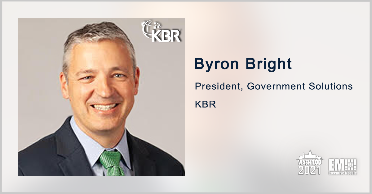 Executive Mosaic is pleased to recognize Byron Bright, president of KBR’s government solutions business, as a recipient of the 2022 Wash100 Award, which is annually presented to the top 100 most influential figures across the government contracting sector for their influence in the federal landscape. Bright is recognized with his third consecuti...