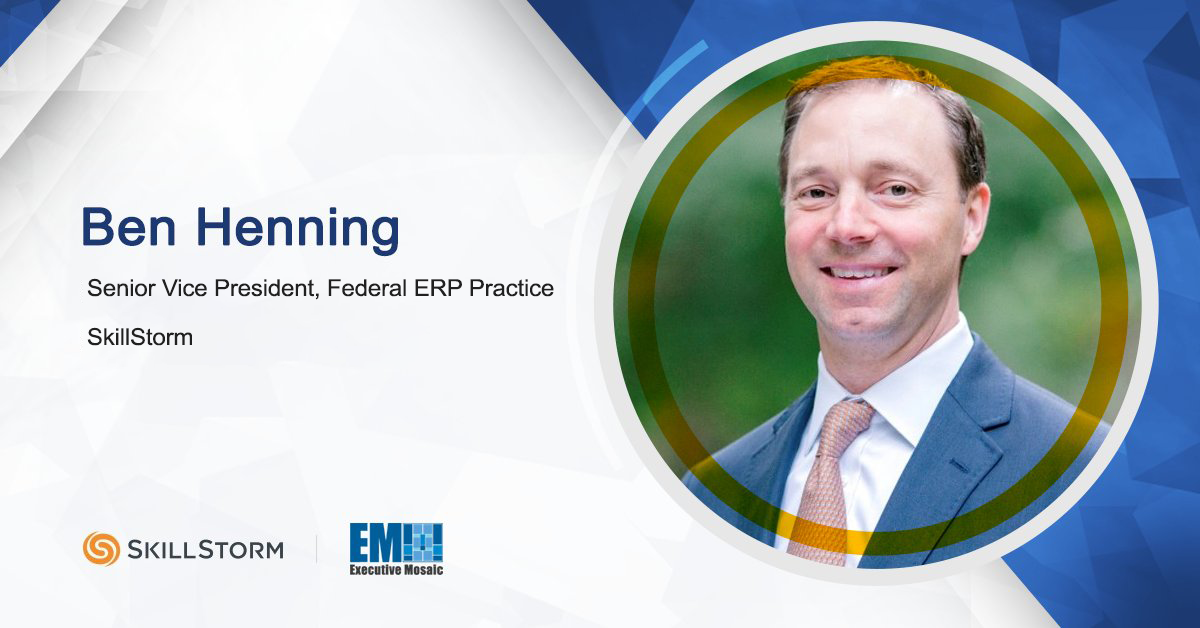 Ben Henning, a technology industry veteran, was named senior vice president of federal ERP practice at SkillStorm, an information technology service management company. In a LinkedIn post shared Monday, SkillStorm said Henning will support government agencies in their digital transformation efforts. The new SVP will also guide agency customers ...