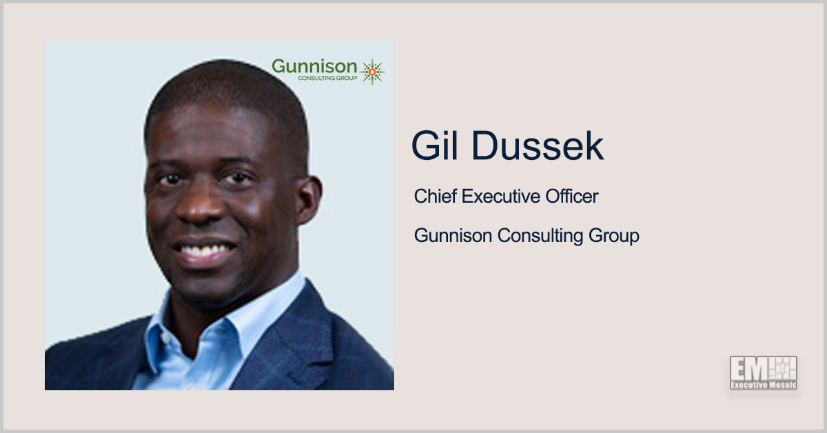 Gil Dussek, CEO of Gunnison Consulting Group, participated in the most recent Executive Spotlight interview with ExecutiveBiz on Tuesday. He talked about his overall growth strategies for the company, its core values and recent senior leadership team expansion as well as Gunnison’s work with the Census Bureau and other civilian agencies. Here’s ...