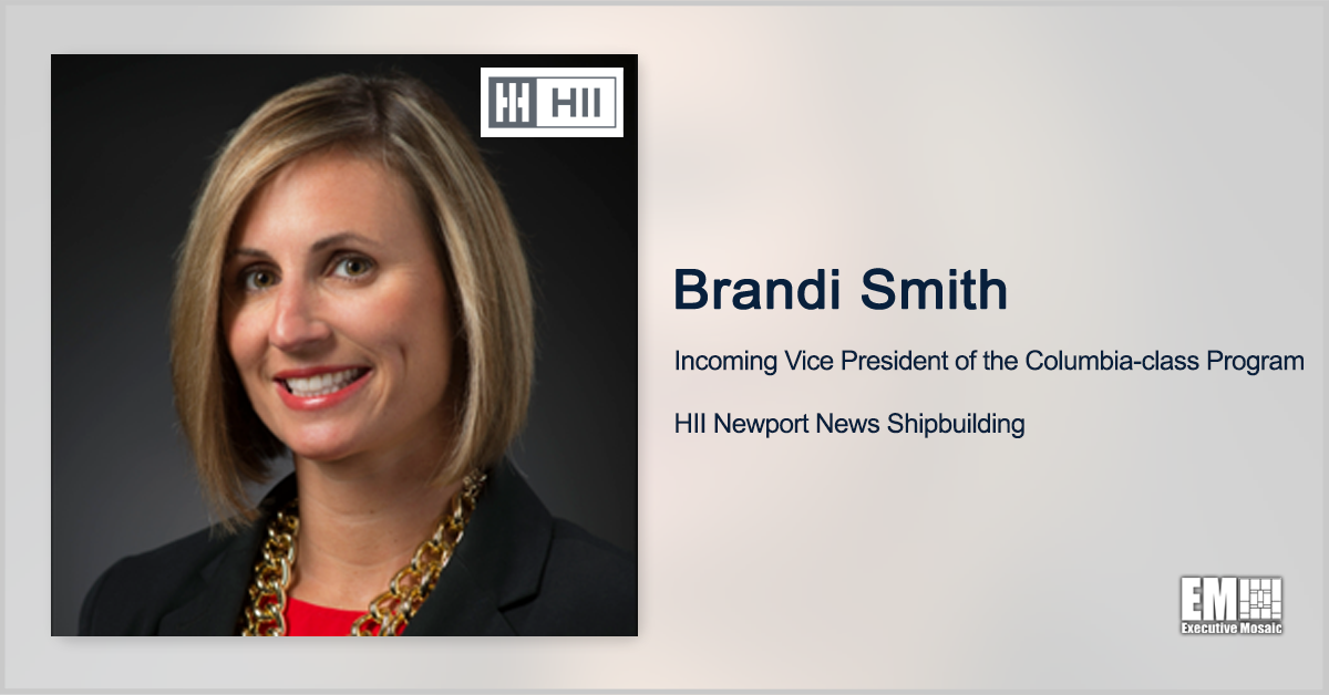 Brandi Smith, a two-decade shipbuilding industry veteran, has been promoted to vice president of the Columbia-class program at HII’s (NYSE: HII) Newport News Shipbuilding division. Smith, who serves as construction program director for the Columbia-class submarine, will assume her new position on June 1 and succeed Charles Southall, who will retir...