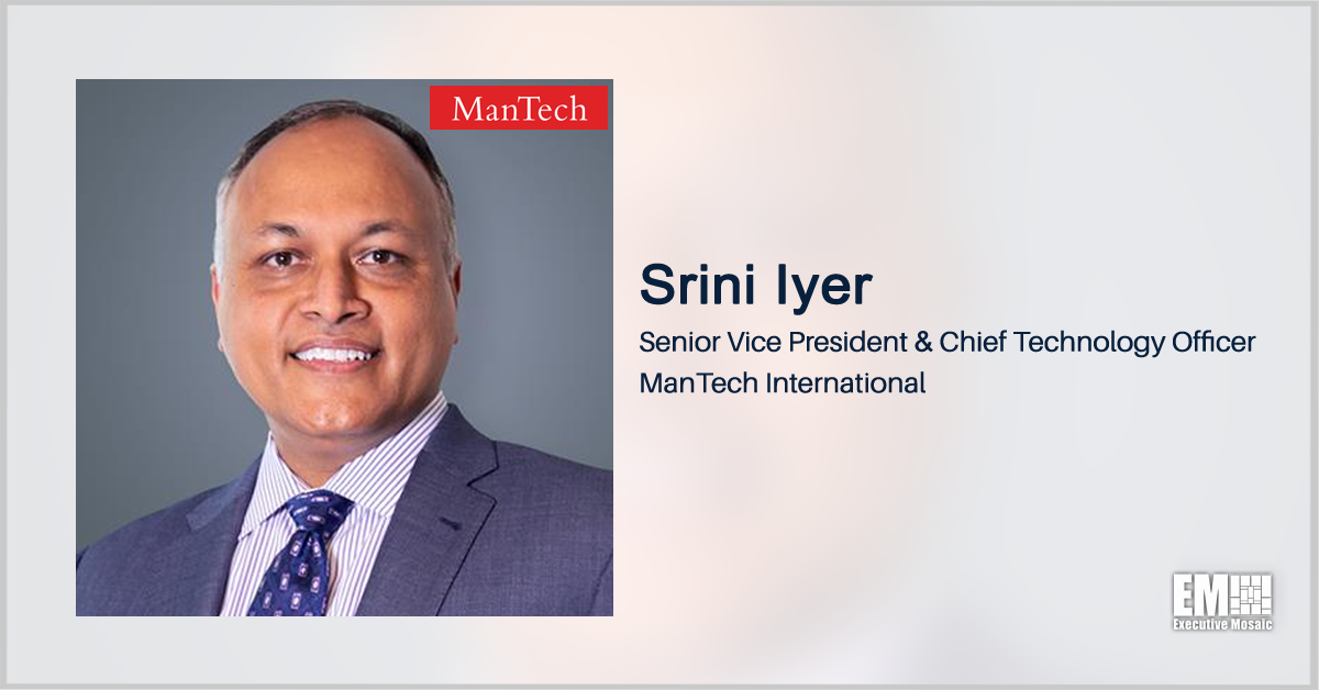 TYSONS CORNER, VA, August 23, 2021 — Srini Iyer, a senior vice president and chief technology officer at ManTech (Nasdaq: MANT), said exploring emerging technology trends and applications could help vendors and their federal customers identify the best possible approaches to modernizing government health information systems, ExecutiveBiz reported ...