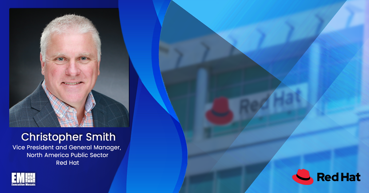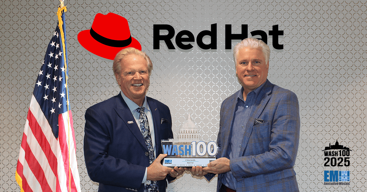 Chris Smith, vice president and general manager of North America Public Sector at Red Hat, has been presented with the 2025 Wash100 Award during a recent visit by Executive Mosaic CEO Jim Garrettson. Smith won his first Wash100 Award in recognition of his efforts in promoting the use of open-source software in the public sector....