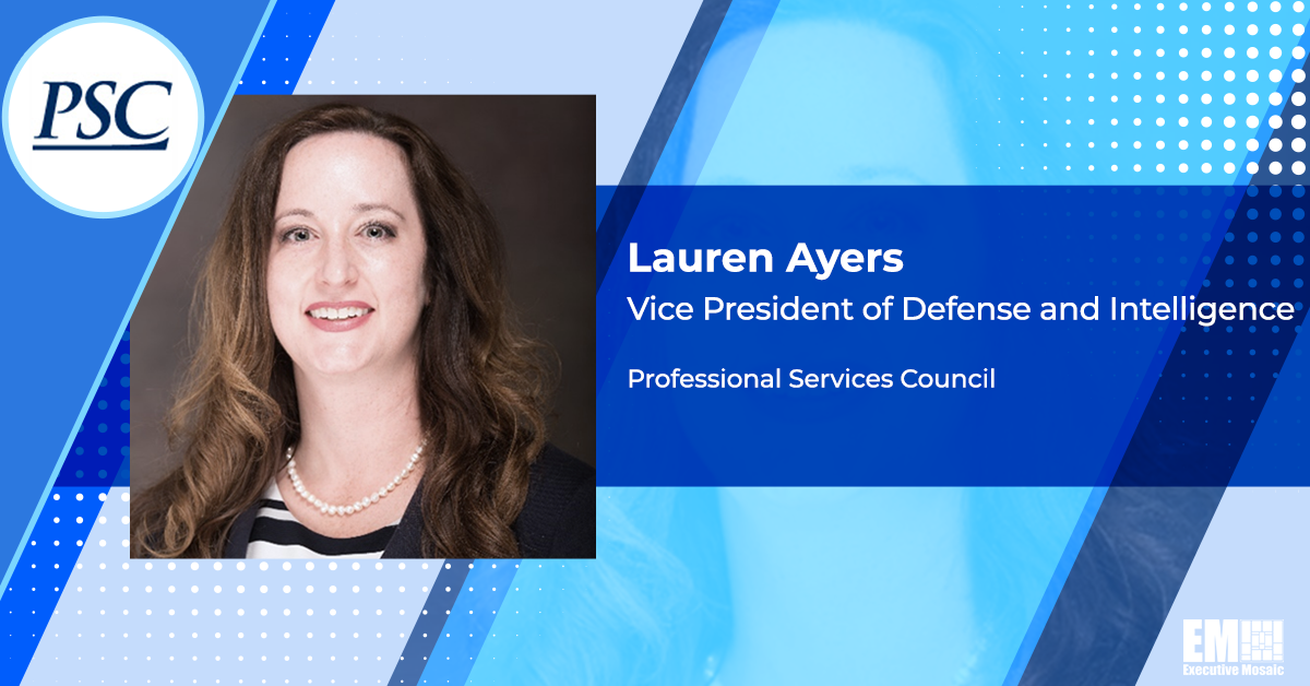 Lauren Ayers, a federal and industry acquisition and procurement executive, has joined the Professional Services Council as vice president of defense and intelligence. She oversees PSC’s policy, education and advocacy efforts in support of the Department of Defense and Intelligence Community agencies. Ayers most recently worked at the Department o...