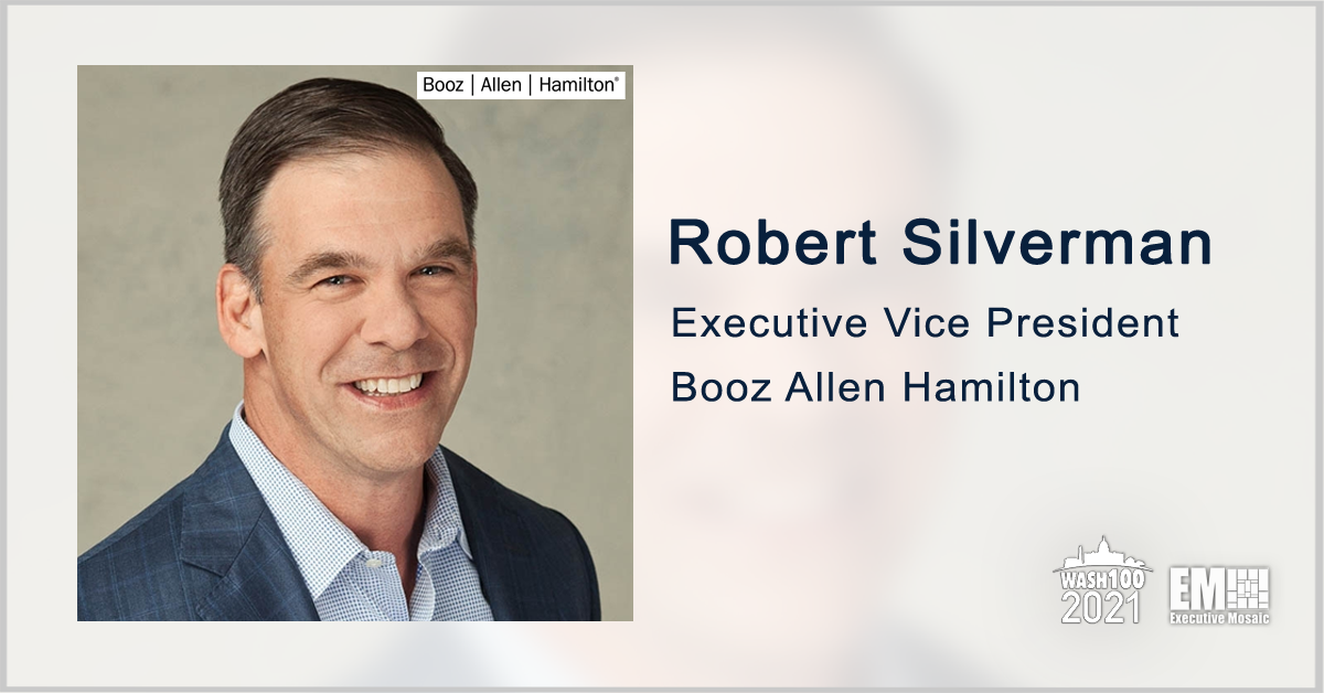 Robert Silverman, an executive vice president with Booz Allen Hamilton, was recently presented his first Wash100 Award, the most prestigious and coveted award in government contracting (GovCon), by Executive Mosaic CEO Jim Garrettson during a recent visit to BAH headquarters. For his 2021 Wash100 Award, Silverman was recognized for his leadership an...