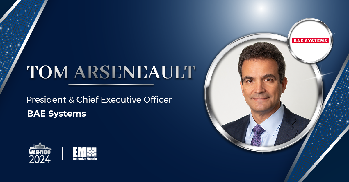 Executive Mosaic, the government contracting industry’s premier media and events organization, is pleased to induct Tom Arseneault into the 2024 Wash100. As president and CEO of BAE Systems, Arseneault is recognized for his forward-thinking support of the U.S. defense effort through inspired new business combinations and aggressive contract purs...